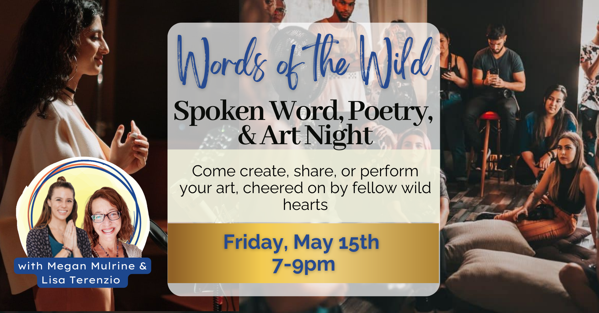 This is your sacred space to be free in your creativity, to unleash your wild spirit, and to let your voice, your words, and your art flow like honey. Bring poetry, prose, music, or visual art that you’ve created (or the work of an artist you admire), and upon arrival, we’ll create an “open mic” presentation schedule for the evening. When it’s your turn, you’ll share your work in this loving and supportive group, uplifting and cheering each other on. But if you don’t have anything prepared, you’re also invited to participate! During the first portion of the evening, before any presentations, we’ll have access to paints and canvas, paper and pen, mocktails, snacks, and pieces of nature, for you to tap into your creativity and make art right there and then, written or visual. We’ll offer open slots on the schedule for you to stand up and show off your freshly-created work, if your wild spirit moves you. Cover charge of $20 includes mocktails, charcuterie, and access to art and writing supplies.